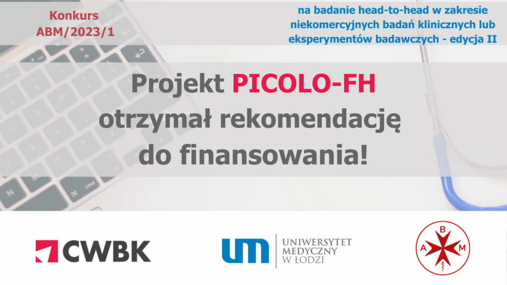 Z ogromną radością informujemy, że Projekt „ComParison of InClisiran Or aLirOcumab to standard therapy in pediatric Familial Hypercholesterolemia – head to head PICOLO-FH clinical trial” otrzymał rekomendację do finansowania w ramach Konkursu ABM/2023/1 (Konkurs na badanie head-to-head w zakresie niekomercyjnych badań klinicznych lub eksperymentów badawczych – edycja II). Wniosek konkursowy otrzymał 136 punkty oraz dofinansowanie blisko 16,8 mln zł i zajął jedenaste miejsce w rankingu […]